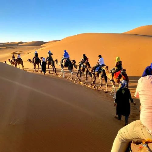 The desert camp of Merzouga puts at your service a great range of spacious, well-equipped to the highest standard royal & galmping tents so that your coming events in Merzouga remain embedded in every guests’ memory.